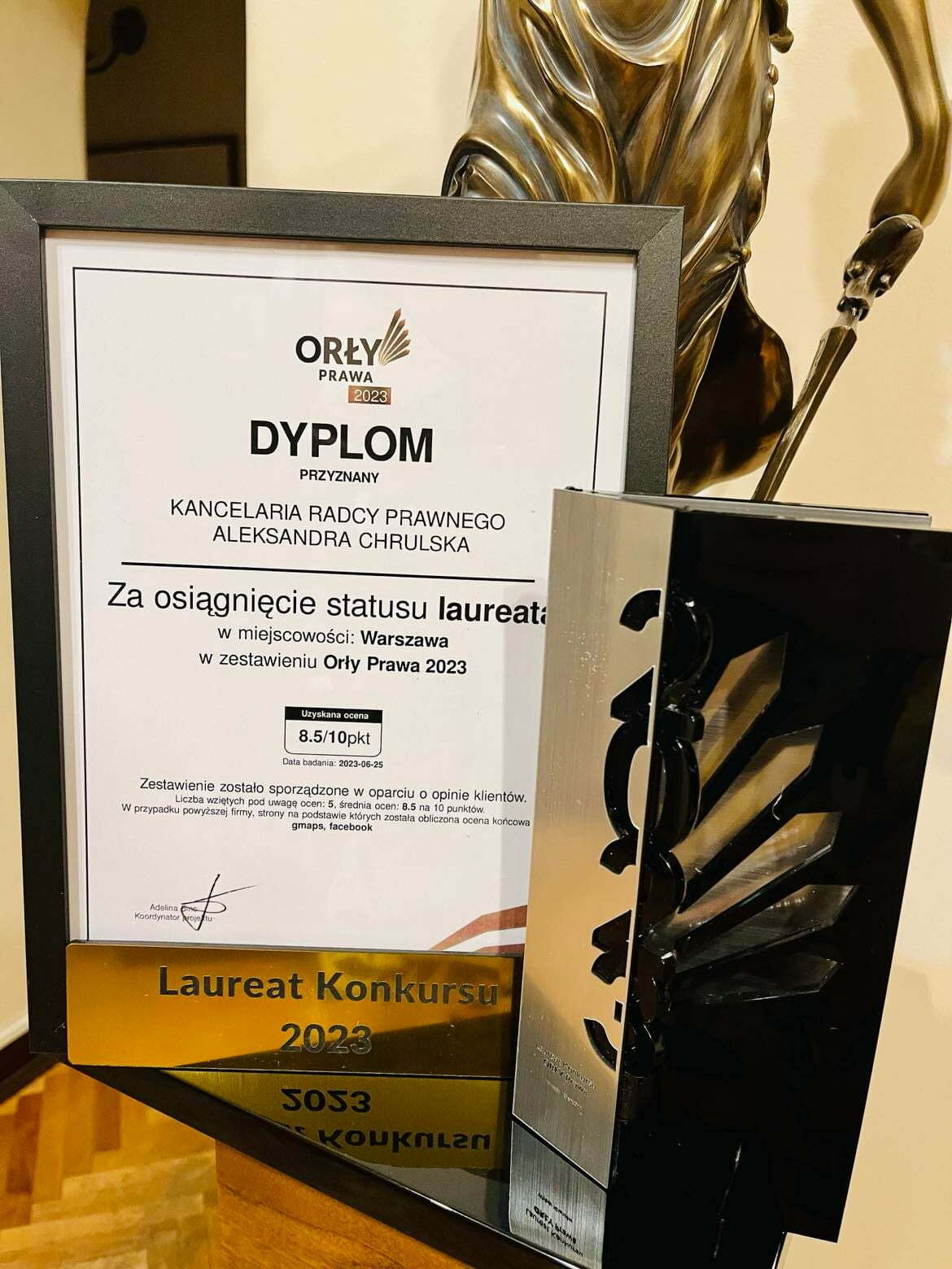 Miło mi poinformować, że moja kancelaria została wyróżniona w plebiscycie “Orły Prawa”2023. Każdego roku plebiscyt nagradza najlepsze, spośród istniejących na rynku, kancelarie prawne na podstawie opinii klientów zamieszczanych w Internecie.