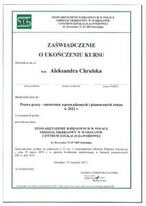 W międzyczasie odbywania aplikacji radcowskiej ukończyłam ponadto studia podyplomowe na kierunku: Prawo Pracy na Wydziale Prawa i Administracji Uniwersytetu Warszawskiego, studia podyplomowe na kierunku: Prawo lotnicze na Wydziale Prawa i Administracji Uczelni Łazarskiego w Warszawie oraz studia podyplomowe na kierunku: Prawo umów w obrocie konsumenckim i profesjonalnym na Wydziale Prawa i Administracji Uniwersytetu Jagiellońskiego w Krakowie.